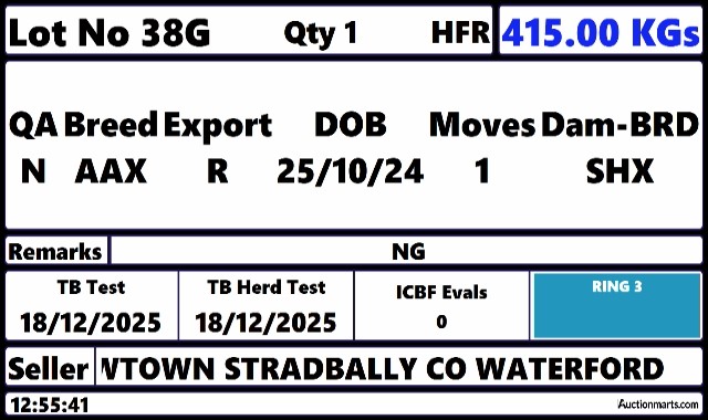 Thursday 26 Feb, Ring 2, Calf Sale, Intake 9am, Viewing 10am to 11.30am, Start 12:00