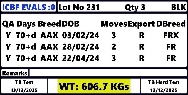 Friday 17 Apr, Ring 1, Calves & Weanlings every Friday @6.30pm, Intake from 3pm, Start 18:30,