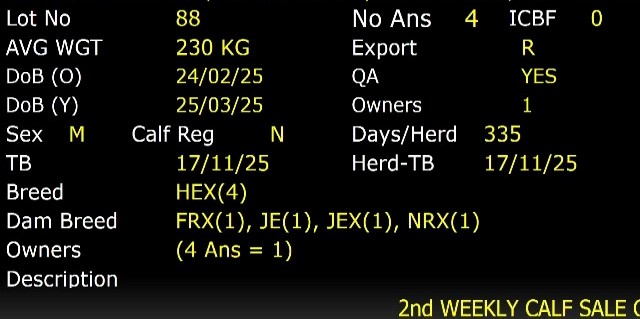 Wednesday 4 Mar, Ring 2, 2nd WEEKLY CALF SALE, Intake 1pm onwards, Start 17:30